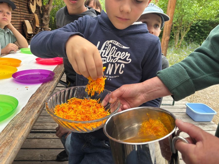 "Zuerst sind wir mit dem Zug nach Heidenheim gefahren. Dann waren wir auf dem tollen Spielplatz im Brenzpark. Anschließend waren wir im Grünen Klassenzimmer und haben gelernt, wie man Ringelblumensalbe herstellt. Mit Verspätung sind wir mit dem Zug wieder zurückgefahren."