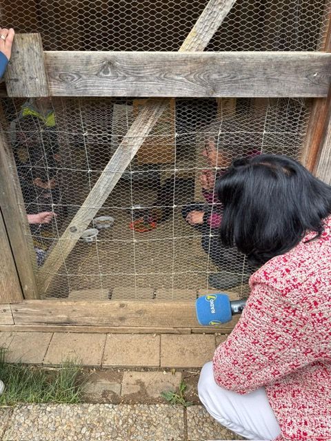 Auch Frau Bold , die Vorsitzende unseres Fördervereins ECHO hat uns besucht. Frau Schuhmacher hat mit ihrem großen Mikrofon Frau Bold und Frau Welzenbach interviewt und auch einige Kinder durften ins große Mikro sprechen. Die Hühner haben vor drei Tagen Nachwuchs bekommen. Wir konnten die kleinen Küken bewundern.