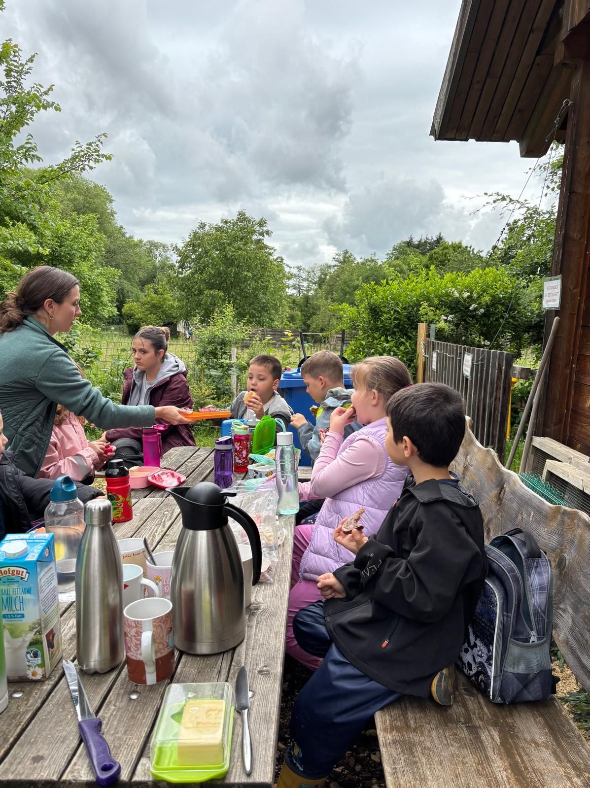Am Donnerstag, 5. Juni 2025 war Frau Schuhmacher von "Radio7 Drachenkinder" zu Besuch auf dem Aufwindbauernhof. Sie fördert seit über 10 Jahren unser Projekt für die Erstklässler auf dem Aufwindbauernhof. Zur Feier des besonderen Tages gab es für die Kinder der Klasse 1a Schokomuffins und für die Erwachsenen Butterbrezeln und Kaffee.