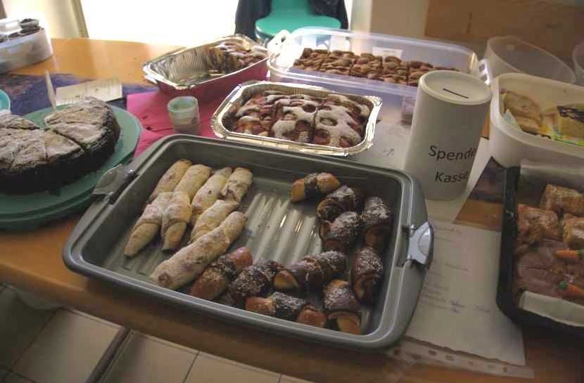 Im Innenhof gab es Würstchen und Getränke sowie Kaffee und Kuchen. Vielen Dank an dieser Stelle nochmals für die zahlreichen Kuchenspenden der Eltern! Durch den Einsatz der Klassen 4b und 2b konnten auch leckere, selbstgebackene Waffeln angeboten werden. Die Spielstraße auf dem Schulhof war zahlreich besucht, Eltern und Lehrer kamen bei gemütlichem Beisammensein ins Gespräch.