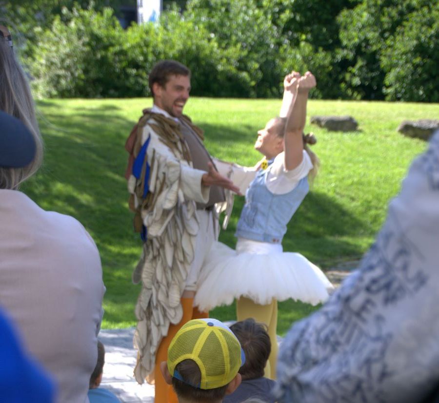 Erstes Highlight der Nachmittages war der Besuch des Eiswagens, an dem sich schnell eine lange Warteschlange bildete. Darauf folgte bald auch schon ein weiterer Höhepunkt durch den Besuch des Stadttheaters Aalen. Inmitten von Schülern, Eltern, Großeltern, Geschwistern und Lehrer wurde das Stück „Lahme Ente – blindes Hund“ aufgeführt. Klein und Groß amüsierten sich über die Abenteuer der zwei tierischen Figuren, die am Ende Freunde wurden. Ein sehr gelungener Abschluss für das Schulfest.