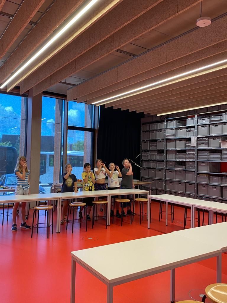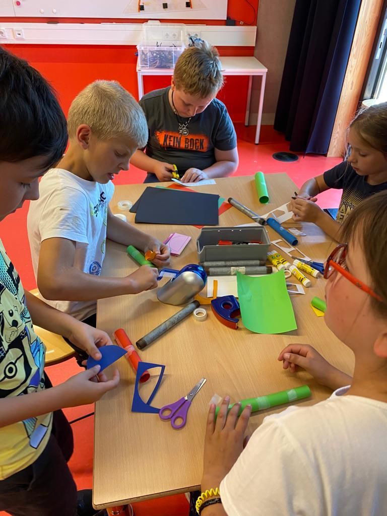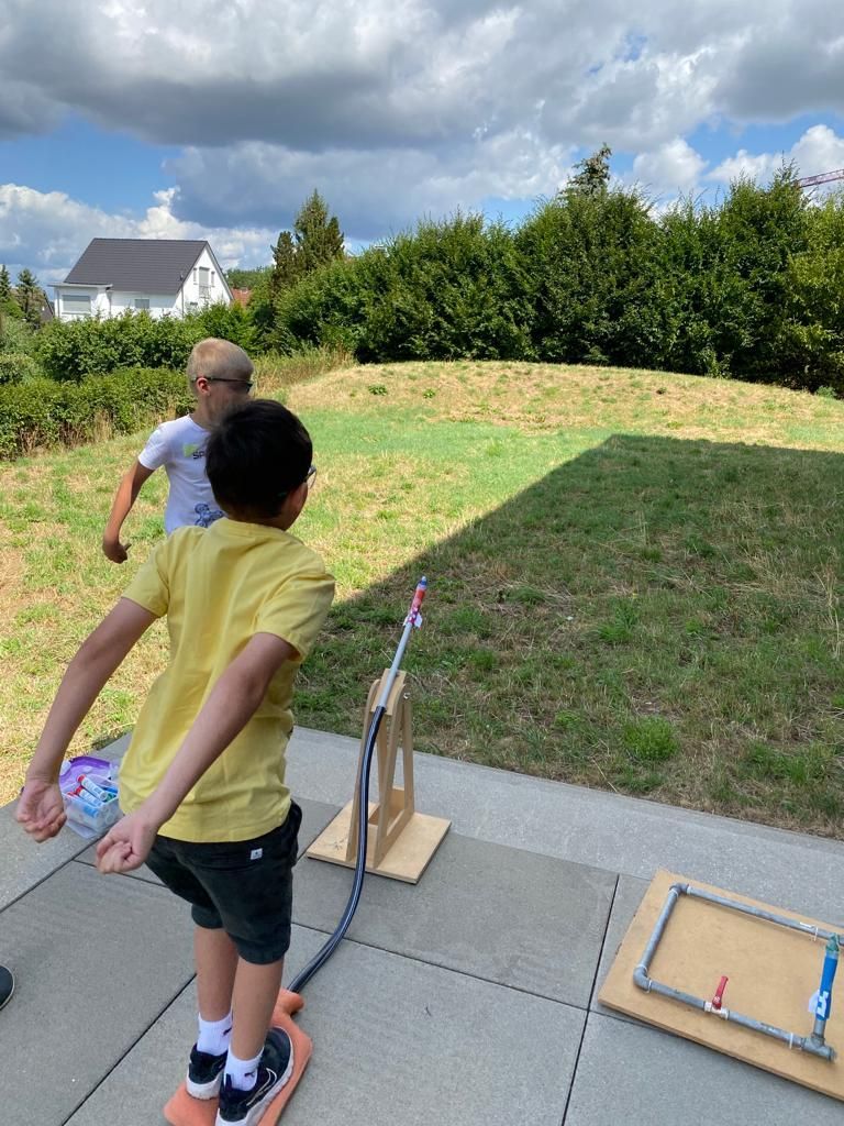 Am Donnerstag besuchten wir das Explorhino und bauten eigene Raketen, die wir zusammen fliegen ließen.