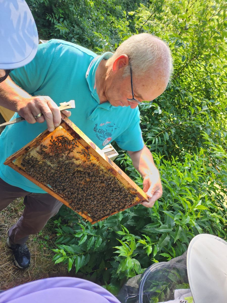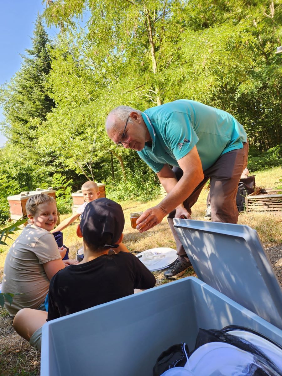 Einen Einblick in die Welt der Bienen (unsere unbekannten schwarz-gelben Flugobjekte) erhielten wir am Dienstag beim Besuch des Lehrbienenstandes.