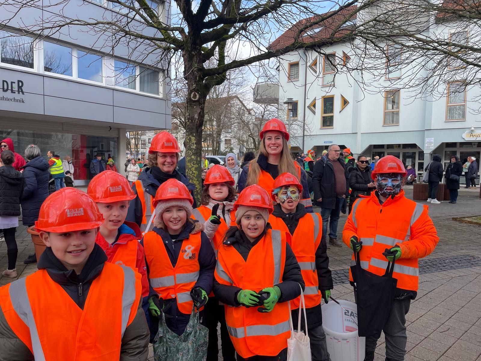 Alle zusammen liefen wir zum Karlsplatz. Dort mussten wir warten, bis es losging. Nach einer Weile gingen wir durch die Pestalozzistraße. Ein paar Süßigkeiten wurden geworfen. Die Kinder sammelten sie ein. Wir liefen mit lauter Musik durch die Straßen und kamen nach einiger Zeit beim Rathaus an.