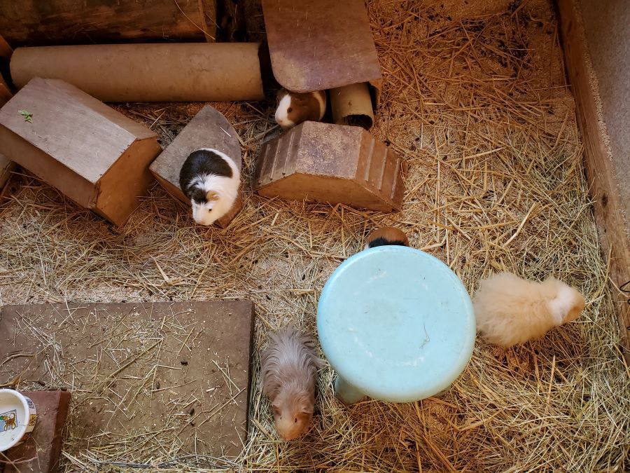 Auch bei den Kleintieren wird schon fleißig gearbeitet. Die Näpfe werden geputzt und mit frischem Wasser befüllt, neues Heu kommt in die Raufen und frisches Gemüse für alle Kaninchen und Meerschweinchen wird vorbereitet. Zum Füttern der Kleintiere dürfen sich die Kinder mit in den Stall setzen – das macht Spaß!