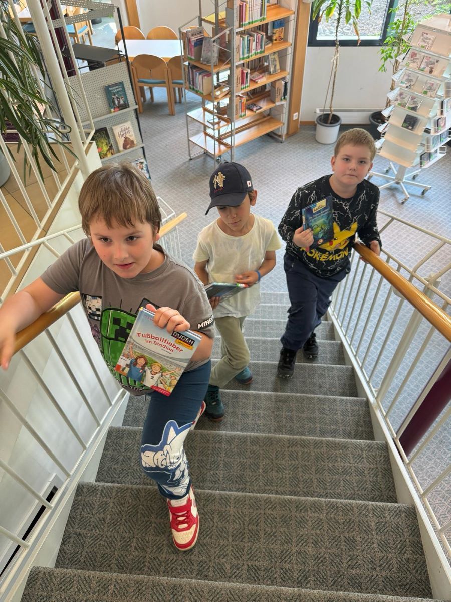 Gemeinsam mit Frau Lehmann von der Stadtbücherei Wasseralfingen durchstöberten die Zweitklässler:innen die Regale und suchten für jedes Kind das passende Buch. Ob Super-Hugo, Hexe Lilly, Tafiti oder der kleine Drache Kokosnuss – am Ende war für alle etwas dabei.