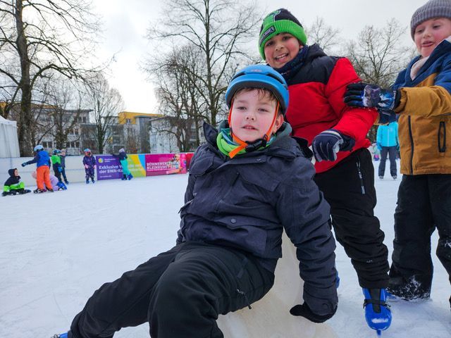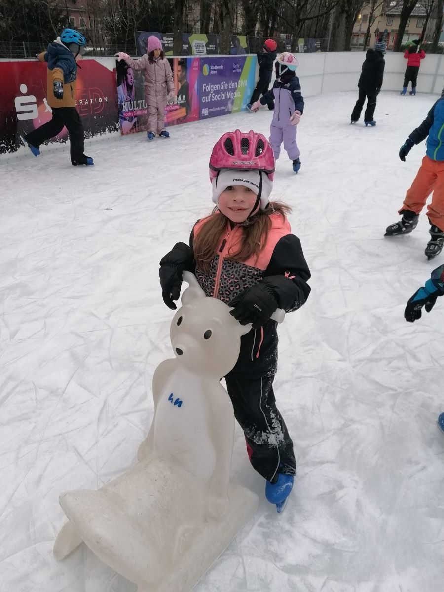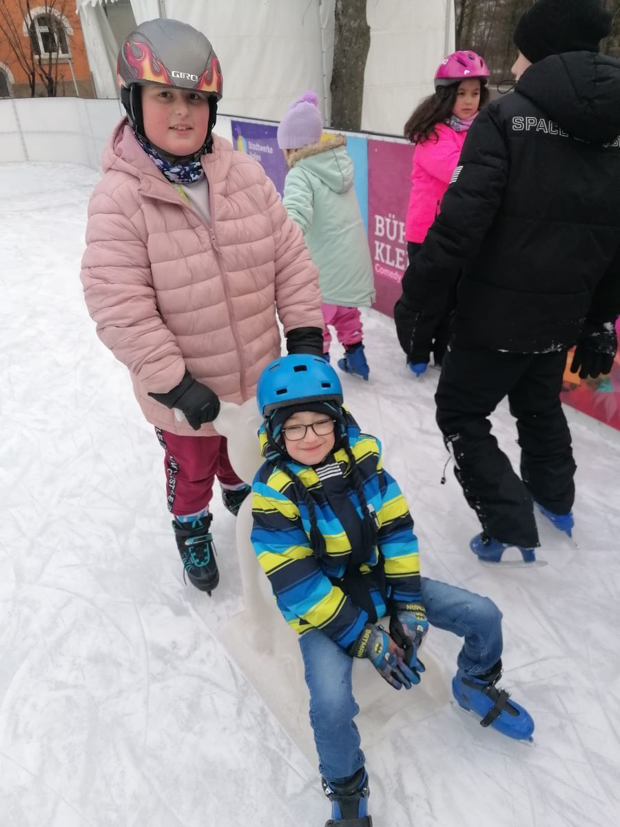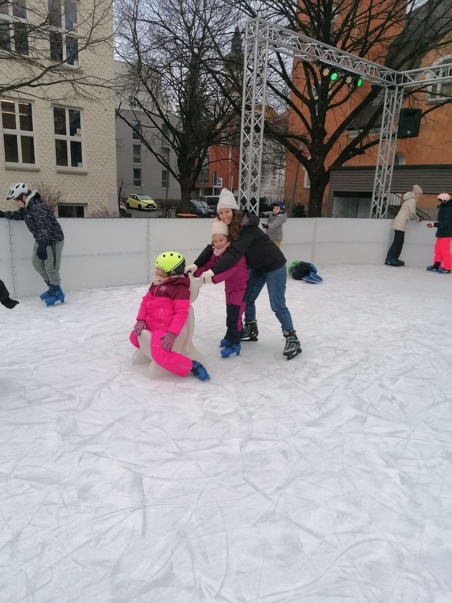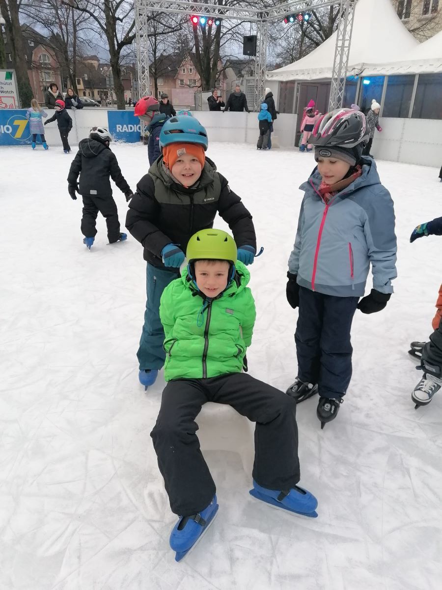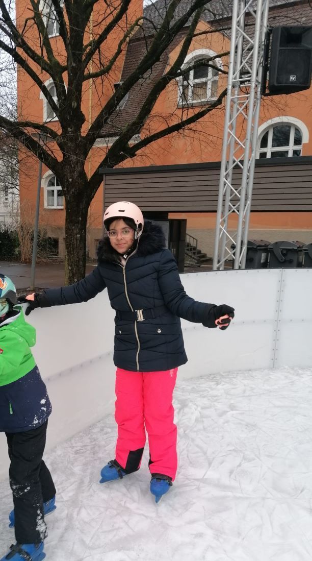 Kurze Zeit später flitzten strahlenden Gesichter über die Schlittschuhbahn. Egal ob Anfänger, Fortgeschrittener oder erfahrener Eisläufer – alle hatten großen Spaß. Etwas erschöpft und glücklich kamen alle anschließend wieder an die Schloss-Schule zurück und hatten jede Menge zu erzählen.